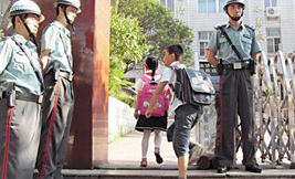 学校保安负责守护好学校,保证学校公共财产不受损失,保证师生人身安全,为此特定如下职责:一、站岗制度1、固定岗的责任区为:校门,站立